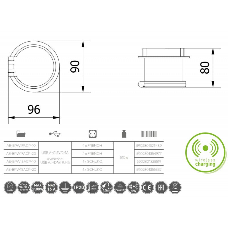- tri zamenljive utičnice (HDMI, USB-A I RJ-45)